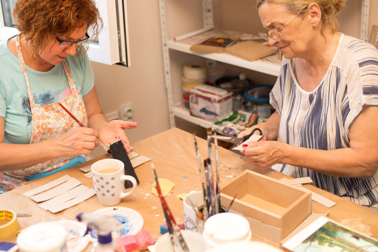 Yn Gaffis Creadigol ‘Arts4Wellbeing’ rydym yn defnyddio hwyluso tyner a meddylgar i greu awyrgylch arbennig iawn. O’r cam gyntaf, wrth gamu trwy’r drws, rydym yn croesawu pobl, yn cynnig sedd, diod, bwyd a chyfle i gymryd rhan mewn sgwrs grŵp. Rydym ni fel hwyluswyr yn defnyddio amryw o bynciau sgwrs gyffredinol i alluogi pobl i siarad am beth sy’n bwysig iddyn nhw, yn annog cysylltu ag eraill. Dros amser mae cyfranogwyr yn tyfu mewn hyder, yn teimlo’n fwyfwy hamddenol ac yn cymryd perchnogaeth o’r grŵp, yn gyfforddus i fod yn gwbl eu hunain. Rydym yn gweithio gyda phobl er mwyn iddyn nhw gyd-adeiladu rhwydweithiau cryf a chysylltiadau personol. Mae hyn yn creu deinameg grŵp ymddiried a phositif. I’r rhai sy’n cymryd rhan mewn Caffis, mae’r manteision yn crychdonni allan ac yn gwella eu hwythnos i gyd. ‘Am yr oriau nesaf, rydych chi’n mynd rhywle arall, ac rydych chi wedi anghofio yn gyfan am y byd tŷ allan, ac mae hwnna’n paratoi chi am y chwech i saith diwrnod nesaf’